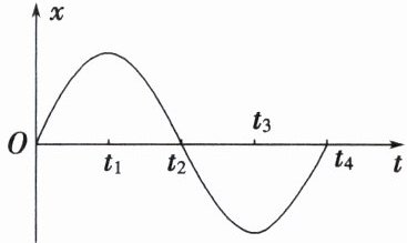 CD 解析:由题图读出$t_1$时刻摆球的位移最大,说明摆球在最大位移处,速度为零,回复力最大,合外力不为零,故A错误;$t_2$时刻摆球的位移为零,说明摆球在平衡位置,摆球的速度最大,悬线对它的拉力最大,故B错误;$t_3$时刻摆球的位移最大,说明摆球在最大位移处,速度为零,回复力最大,故C正确;$t_4$时刻摆球的位移为零,说明摆球在平衡位置,摆球的速度最大,悬线对它的拉力最大,故D正确。