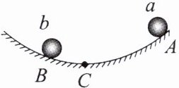 3. 如图所示,光滑圆弧轨道的半径为 $ 2 m $, $ C $ 点为圆心正下方的点, $ A $、 $ B $ 两点与 $ C $ 点的距离分别为 $ 6 cm $、 $ 2 cm $。现将 $ a $、 $ b $ 两直径相同的小球分别从 $ A $、 $ B $ 两点由静止同时释放,则两小球相碰的位置是( )