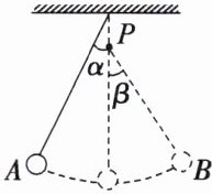 4. 一个单摆的摆长为 $ l $,在其悬点正下方 $ 0.19l $ 处有一钉子 $ P $,如图所示。现将摆球向左拉至 $ A $ 位置,放手后让其摆动,则此单摆的振动周期是(图中摆角 $ \alpha $ 和 $ \beta $ 都小于 $ 5° $)( )
