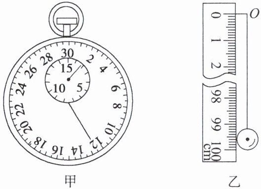 (1)摆球经过最低点时的速度最大,容易观察和计时;题图甲中停表的示数为1.5min + 12.5s = 102.5s,则周期T = 102.5/50s = 2.05s。