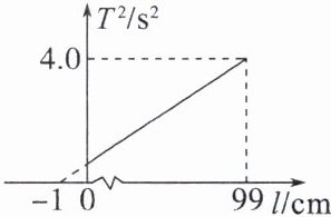 (2)由图像知,当T² = 4.0s时,真实摆长l真实 = 1.00m,代入公式g = 4π²l真实/T²,得g = 9.87m/s²。
