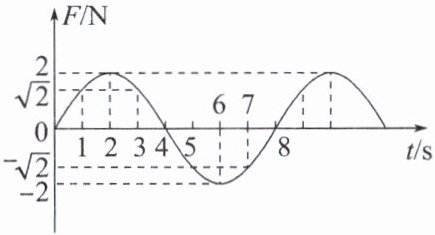 2. (多选)如图所示为一做简谐运动的物体所受的回复力 $ F $ 随时间 $ t $ 的变化规律,下列说法正确的是( )
