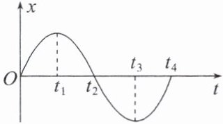 1. (多选)一只小鸟从上往下落在细树枝上,随树枝做小幅度上下振动(可视为竖直方向的简谐运动),某时刻开始计时,其振动位移 $ x $ 随时间 $ t $ 变化规律(振动图像 $ x - t $)如图所示。已知小鸟只在重力和树枝对小鸟作用力的作用下运动,取竖直向上为正方向,则下列说法正确的是( )