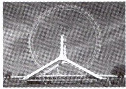 3. 天津市地标之一——“天津之眼”是一座桥上观景的摩天轮,如图所示。摩天轮悬挂透明座舱,乘客随座舱在竖直面内做轨道半径为$R$、角速度为$\omega$的匀速圆周运动。已知当地重力加速度为$g$,则质量为$m$的乘客从最高点运动到最低点过程中,重力的冲量大小为( )