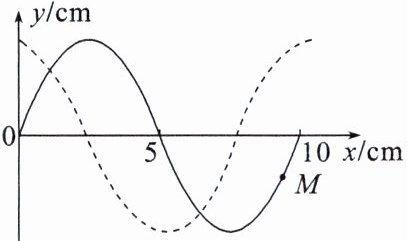 3.D 解析:由图像可知该波的波长为λ=10cm,故A错误;波沿着x轴正方向传播时,在t=0时刻到t=0.5s的过程中,Δt=nT+$\frac{3}{4}$T(n=0,1,2,…),已知波的周期T>0.5s,则n只能取0,则T=$\frac{2}{3}$s,故波速为v=$\frac{\lambda}{T}$=$\frac{10}{\frac{2}{3}}$cm/s=15cm/s,故B、C错误;该简谐横波沿着x轴正方向传播,根据同侧法可知t=0时刻,质点M向下振动,故D正确。