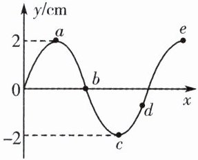 2.ACD 解析:根据波的图像知,在图示时刻质点b的位移y_{b}=0,质点a处于波峰,且y_{a}=2cm,则振幅A=2cm,故A、C选项正确;波沿x轴正方向传播,其波形图也就沿x轴正方向匀速平移,则经过一小段时间(Δt≤$\frac{1}{4}$T)时,其波形如图中虚线所示,故在图示时刻质点b沿y轴正方向运动,而质点d沿y轴负方向运动,故B选项错误,D选项正确。