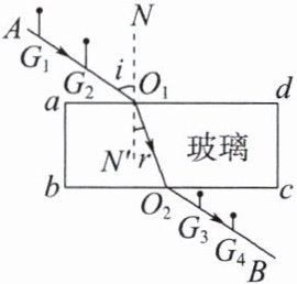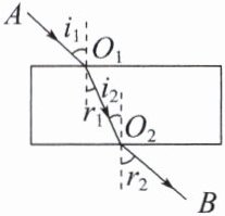 如图所示,某一入射光线 $ AO_1 $ 穿过矩形玻璃砖的情况。