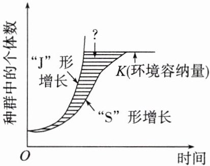 (5)下图体现了种群“J”形和“S”形增长曲线之间的关系,二者之间的阴影部分代表什么?