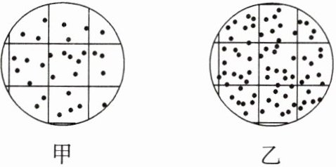 2. 在一定量的酵母菌培养液中放入活酵母菌若干,抽样镜检,如图甲所示(图中小点代表酵母菌)。将容器放在适宜温度下恒温培养 5 小时后,稀释 100 倍,再抽样镜检,如图乙所示。根据实验结果判断,以下叙述正确的是( )