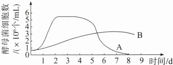 3. 在进行“培养液中酵母菌种群数量的变化”实验时,设置的两组实验的试管中含有等量的酵母菌培养液,种群数量变化情况如图中 A、B 曲线所示。下列叙述正确的是( )