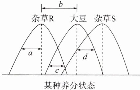 2. 下图是大豆和杂草R、杂草S在某种养分生态位上的分布曲线。相关叙述正确的是( )