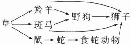 4.A 解析:该食物网中共有 5 条食物链,A 错误;狮子在不同食物链中分别占据第三、第四、第五营养级,共 3 个营养级,B 正确;狮子捕食野狗,两者为捕食关系,狮子和野狗都捕食羚羊和斑马,两者又有种间竞争关系,C 正确;蛇的数量减少,食蛇动物的数量会减少,但狮子会更多地捕食羚羊、野狗和斑马,故狮子的数量不会发生明显的变化,D 正确。