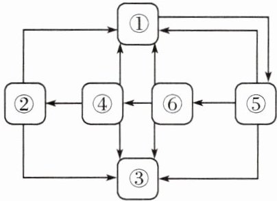 A 解析:根据题图中①和⑤之间为双向箭头且其他字母均有箭头指向①可知,①是非生物的物质和能量,③为分解者,⑤为生产者,②④⑥为各级消费者,题图中5→⑥→④→②为一条食物链。⑤表示生产者,③为分解者,分解者应该有箭头指向非生物环境①,题图中缺少的箭头是③→①,A正确。③为分解者,食物链中不包括分解者,B错误。题图中食物链为⑤→⑥→④→②,若②获得的总能量为bkJ,求生产者至少固定的能量,应按照能量传递效率20%计算,则最少需要生产者固定b÷20%÷20%÷20%=125bkJ能量,C错误。⑤为生产者,能吸收二氧化碳,所以增加⑤的数量,才能有助于缓解温室效应,D错误。