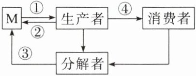 A.若M表示大气中的CO₂库,则碳元素在图中④过程中是以有机物形式传递的