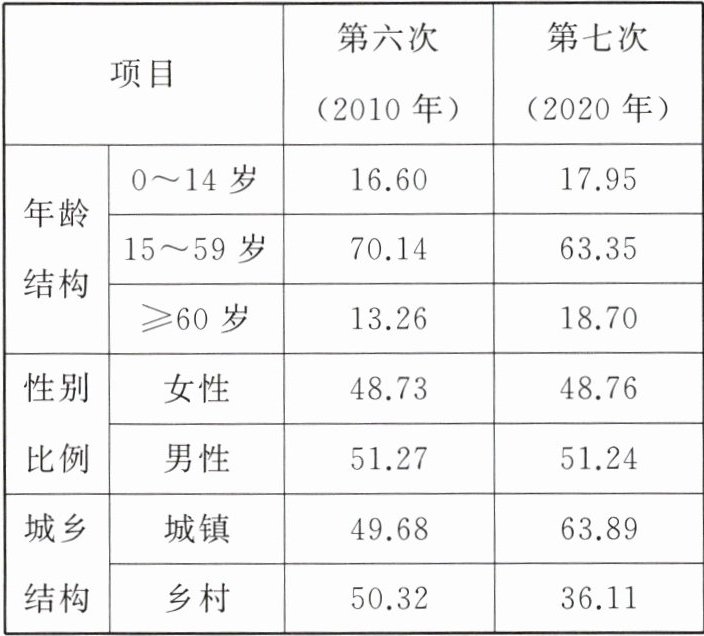 3. 下表为我国两次人口普查的部分数据(%),下列关于种群数量特征的叙述,正确的是( )