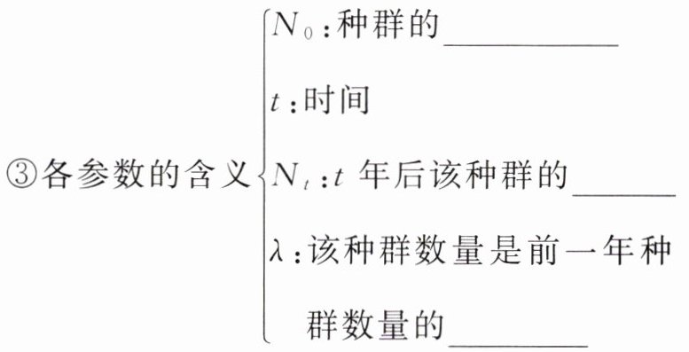 ②建立模型:t 年后种群数量为 Nₜ =________。