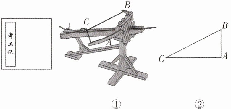 问题:图①为中国古代一种强弩图,图②为这种强弩图的部分组件的示意图,若$\angle A = 1$矩,$\angle B = 1$欘,则$\angle C =$