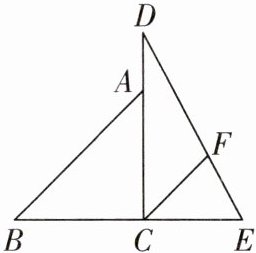 11. 如图,$\triangle ABC$,$\triangle CDE$均为直角三角形,$\angle ACB = 90^{\circ}$,$\angle DCE = 90^{\circ}$,且$\angle B = 45^{\circ}$,$\angle D = 30^{\circ}$,$CF$平分$\angle DCE$交$DE$于点$F$。