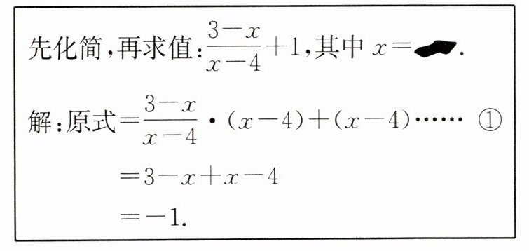 11. 如图的解题过程中第①步出现错误,但最后所求的值是正确的,则图中被污染的 $x$ 的值是
