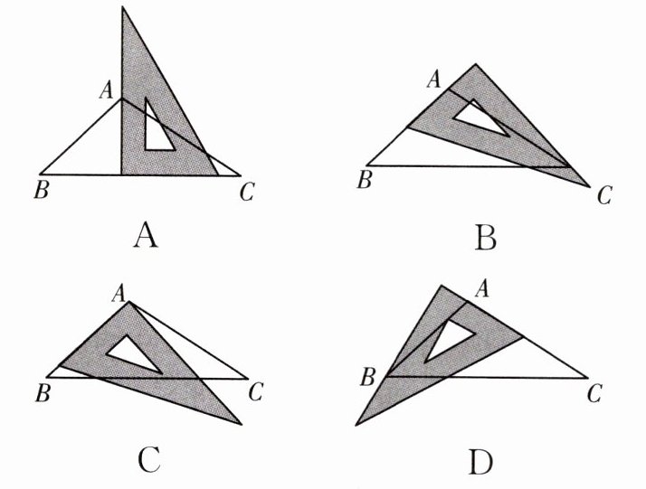 3. 如图,用一副三角板作△ABC的高线,下列三角板的摆放位置不正确的是(