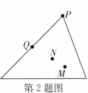 2. [2024邯郸模拟]如图,有一块质地均匀的三角形硬纸板,现在硬纸板上选一点,在这个点上钻一个小孔,通过小孔系一条线将三角形硬纸板吊起,若三角形硬纸板处于平衡状态,则这一点可能是(