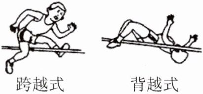 8. 试用重心的知识解释为什么现在优秀跳高运动员都采用“背越式”技术而不采用“跨越式”(如图)。