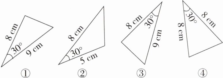 7.解:不正确.使用“SAS”的前提条件:已知的对应元素(边或角)必须都是两个三角形中的元素(边或角),且其中一个三角形的两边及其夹角必须对应相等.本题错误的原因是列的条件和使用方法不对应,错用“SSA”来证明两个三角形全等.