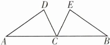 在△DAC和△EBC中,$\begin{cases} AD = BE, \\ \angle A = \angle B, \\ AC = BC, \end{cases}$
