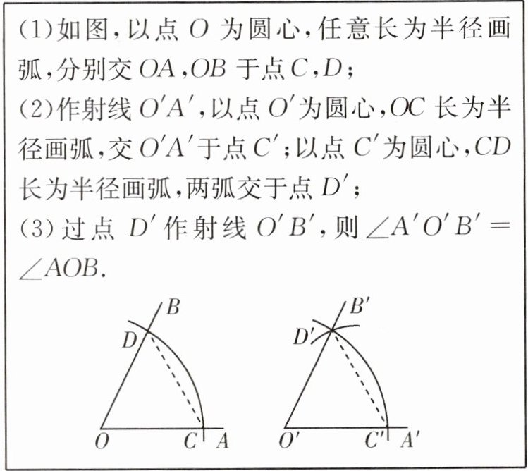 上述方法通过判定△C'O'D'≌△COD得到∠A'O'B'=∠AOB,其中判定△C'O'D'≌△COD的依据是(