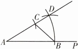 ②画一条射线AP,以点A为圆心,m长为半径画弧,交AP于点B;