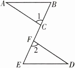 7. [2024 襄阳模拟] 如图,已知点 $ B $,$ C $,$ F $,$ E $ 在同一直线上,$ \angle 1 = \angle 2 $,$ BF = EC $. 在不添加任何辅助线的前提下,添加一个条件:,使得 $ \triangle ABC \cong \triangle DEF $,并证明.