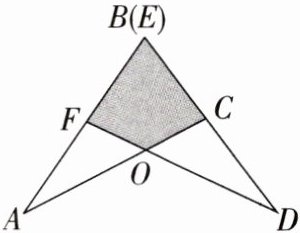 5. 两块完全相同的三角形纸板 $ ABC $ 和 $ DEF $,按如图所示的方式叠放,阴影部分为重叠部分,点 $ O $ 为边 $ AC $ 和 $ DF $ 的交点,不重叠的两部分 $ \triangle AOF $ 与 $ \triangle DOC $ 是否全等? 为什么?