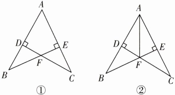 2. 如图,$AB = AC$,$CD \perp AB$于点$D$,$BE \perp AC$于点$E$,$CD$,$BE$交于点$F$。