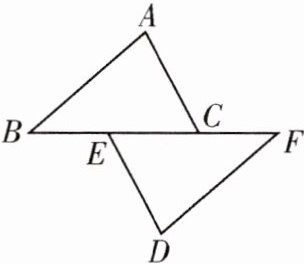 5. 如图,已知点$B$,$E$,$C$,$F$在同一条直线上,$AB = DF$,$AC = DE$,$\angle A = \angle D$。