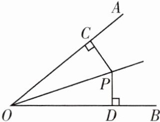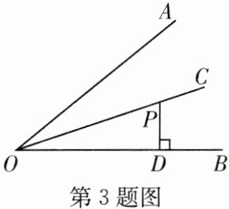 3. [2024青海]如图,OC平分∠AOB,点P在OC上,PD⊥OB,PD=2,则点P到OA的距离是 (