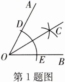 1. 如图,①在射线OA,OB上分别截取线段OD,OE,使OD=OE;②分别以点D,E为圆心,以大于$\frac{1}{2}DE$的长为半径画弧,在∠AOB内两弧交于点C;③作射线OC.若∠AOB=60°,则∠AOC的度数为 (