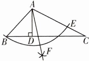 11. [2024宿迁]如图,在△ABC中,∠B=50°,∠C=30°,AD是高,以点A为圆心,AB的长为半径画弧,交AC于点E,再分别以点B,E为圆心,大于$\frac{1}{2}BE$的长为半径画弧,两弧在∠BAC的内部交于点F,作射线AF,则∠DAF=