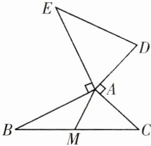 3. 如图,$AB=AE$,$AB\perp AE$,$AD=AC$,$AD\perp AC$,$M$为$BC$的中点。求证:$DE=2AM$。