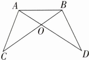 4. 如图,$ D $ 是 $ \triangle ABC $ 外一点,连接 $ BD $,$ AD $,$ AD $ 与 $ BC $ 相交于点 $ O $。有下列三个等式:① $ BC = AD $;② $ \angle ABC = \angle BAD $;③ $ AC = BD $。