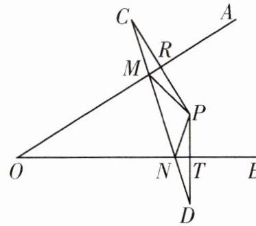 11. [2024利川模拟]如图,点P在$ \angle AOB $内部,点P关于OA,OB对称的点分别为点C,D,连接PC交OA于点R,连接PD交OB于点T,连接CD,交OA于点M,交OB于点N,连接PM,PN.