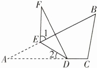 12. 【推理能力】晓星在学习了轴对称的知识后,对三角形中角之间的关系进行了拓展探究.如图,在△ABC中,将△ABC沿DE折叠,点A的对应点是点F,当$ \angle A = 30° $,$ \angle 1 = 40° $时,求$ \angle 2 $的度数.