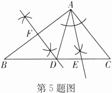 5. 如图,在 $ \triangle ABC $ 中,$ \angle B = 40^{\circ} $,$ \angle C = 50^{\circ} $,通过观察尺规作图的痕迹,$ \angle DAE $ 的度数是 (