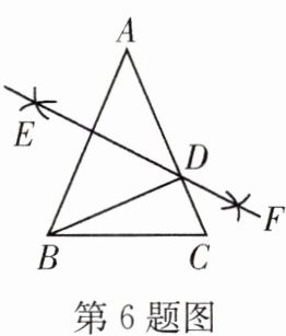 6. [2024 眉山]如图,在 $ \triangle ABC $ 中,$ AB = AC = 6 $,$ BC = 4 $,分别以点 $ A $,点 $ B $ 为圆心,大于 $ \dfrac{1}{2}AB $ 的长为半径作弧,两弧交于点 $ E $,$ F $,过点 $ E $,$ F $ 作直线交 $ AC $ 于点 $ D $,连接 $ BD $,则 $ \triangle BCD $ 的周长为 (