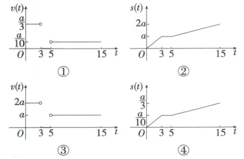 3.A 由题意得$v(t)=\begin{cases}\frac{a}{3},&0\leq t<3,\\0,&3\leq t\leq5,\\ \frac{a}{10},&5<t\leq15.\end{cases}$