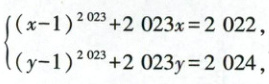 解析 因为$(x-1)^{2023}+2023x=2022$,所以$(x-1)^{2023}+2023(x-1)=-1$,同理可得$(y-1)^{2023}+2023(y-1)=1$.