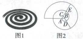 5. (2025 江苏无锡锡山高级中学期末)蚊香(如图 1)具有悠久的历史.某学校的数学社团用数学软件制作“蚊香”图(如图 2),画法如下:作一个边长为 $1$的等边$\triangle ABC$,然后以 $B$ 为圆心,$AB$ 为半径逆时针画圆弧,交线段 $CB$ 的延长线于点 $D$(第一段圆弧),再以 $C$ 为圆心,$CD$ 为半径逆时针画圆弧,交线段 $AC$ 的延长线于点 $E$,再以 $A$ 为圆心,$AE$ 为半径逆时针画圆弧,……,以此类推,当得到的“蚊香”恰好有 $5$ 段圆弧时,“蚊香”的长度为(