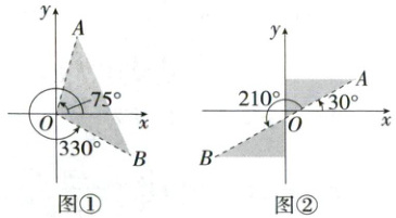 (2)题图①:因为$75^{\circ}=\frac{5\pi}{12},330^{\circ}=\frac{11\pi}{6}=2\pi-\frac{\pi}{6}$,