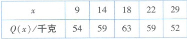 (2)由题表知,$Q(x)$的值随$x$值的增大先增大再减小,所以$Q(x) = a|x - m| + b$更合适。(4分)