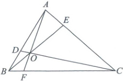 8. 如图,已知$D$,$E$分别是△ABC边$AB$,$AC$上的点,且满足$\overrightarrow{AB}=\frac{3}{2}\overrightarrow{AD}$,$\overrightarrow{AC}=4\overrightarrow{AE}$,$BE$与$CD$交于点$O$,连接$AO$并延长交$BC$于点$F$.若$\overrightarrow{AO}=\lambda\overrightarrow{OF}$,则实数$\lambda$的值为(
