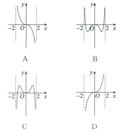 4.D 本题考查函数图象的识别 由$\frac{2 + x}{2 - x} > 0$,得$(x + 2)(x - 2) < 0$,所以$-2 < x < 2$,所以函数$f(x)=x^2\log_{4}\frac{2 + x}{2 - x}$的定义域为$(-2, 2)$,定义域关于原点对称,又$f(-x)=(-x)^2\log_{4}\frac{2 - x}{2 + x}=-f(x)$,所以函数$f(x)$是奇函数,其图象关于原点对称,排除BC;当$x\in(0, 2)$时,$\frac{2 + x}{2 - x} > 1$,则$\log_{4}\frac{2 + x}{2 - x} > 0$,因此$f(x) > 0$,排除A.故选D.